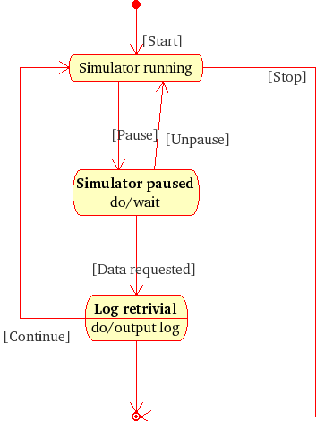 an event *start triggering_event of: (a running_of_a_simulator *simulator_running ending_event: (an event *stop successor_state: a end *end ) (an event *pause triggering_event of: (a wait *simulator_paused ending_event of: (an event *data_requested triggering_event of: (a log_output *log_retrieval successor_state: *end, successor_process: *simulator_running ) ) ) ) ); |